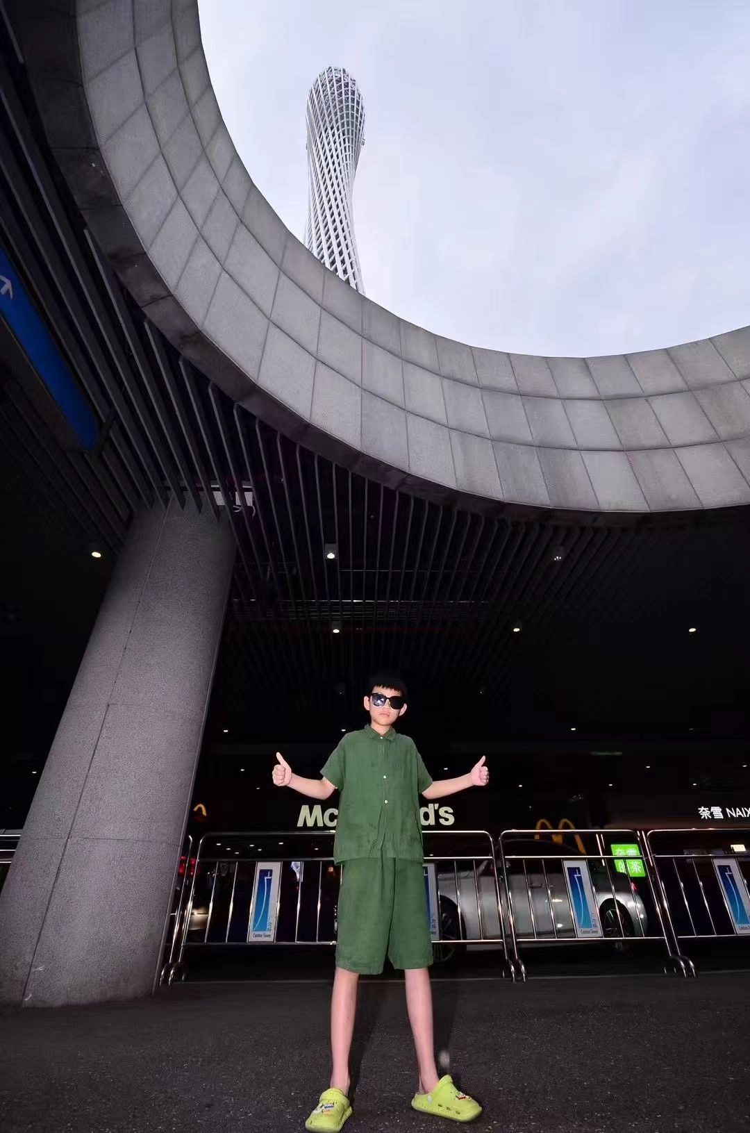 与广州塔贴贴,直接拿捏 “显眼包” 拍照姿势,朋友圈 C 位预定